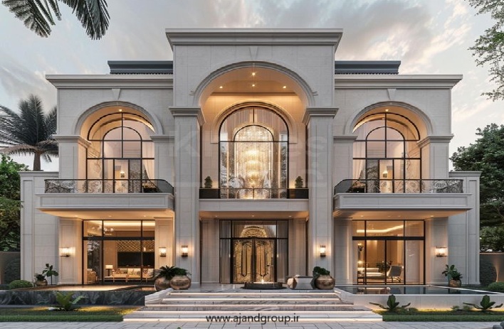طراحی ویلا نئوکلاسیک ترکیبی از شکوه کلاسیک و زیبایی مدرن است که فضایی لوکس و درعینحال راحت را به ارمغان میآورد.
