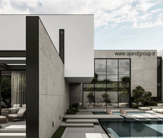 مصالح مدرن: شیشه، فلز، بتن؛ برای سبکهای مینیمال و مدرن مناسباند و امکان ساخت فرمهای خاص را فراهم میکنند.
