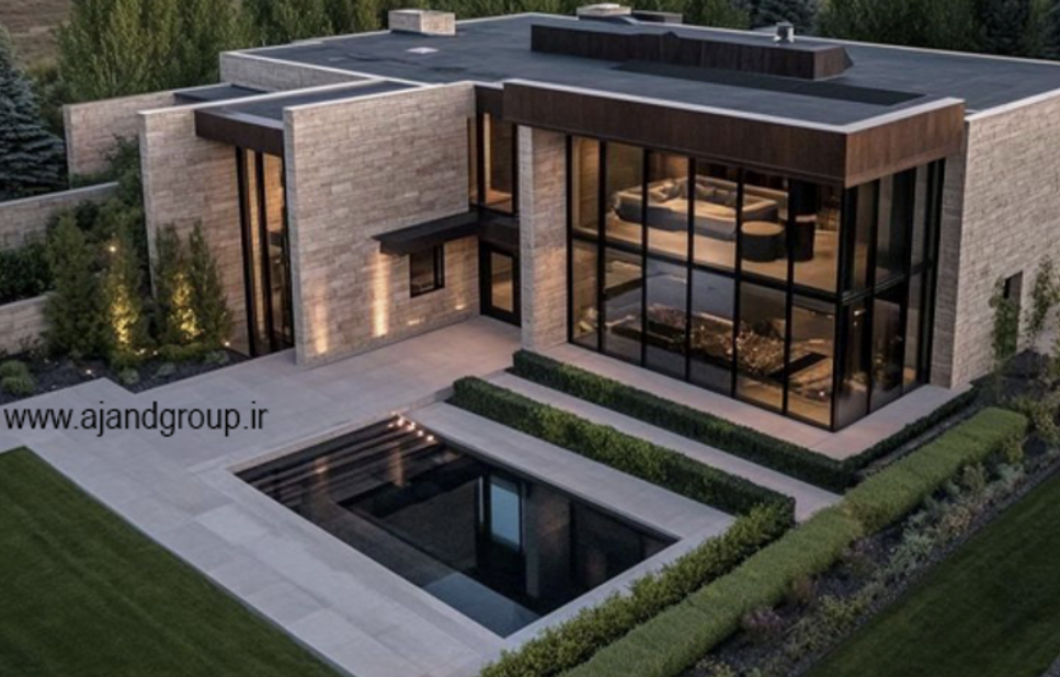 طراحی مدرن با خطوط باز و ترکیب بتن، سنگ و شیشه عملکرد عالی دارد